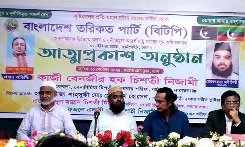 আদর্শ রাষ্ট্র গঠনে ৩৭ দফা লক্ষ্য ঘোষণা দিয়ে আত্মপ্রকাশ করেছে বাংলাদেশ তরিকত পার্টি। রোববার (২১ সেপ্টেম্বর) রাজধানীর জাতীয় প্রেসক্লাবে দলটির আত্মপ্রকাশ হয়।