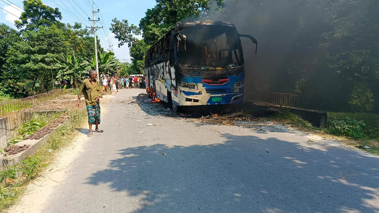 বিক্ষুব্ধ এলাকাবাসী তাৎক্ষণিক বাসটিকে আটক করে আগুন ধরিয়ে দেয়। খবর পেয়ে ঘটনাস্থলে পুলিশ ও ফায়ার সার্ভিস সদস্যরা পৌঁছে আগুন নিয়ন্ত্রণ করে। তবে বাসটির বেশিরভাগ অংশই পুড়ে গেছে বলে স্থানীয়রা জানান।