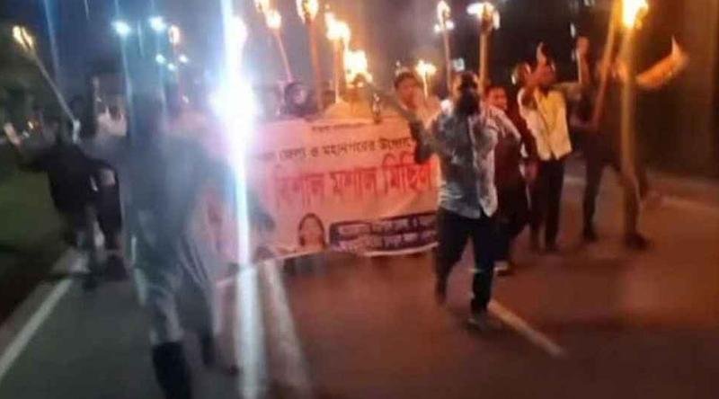 কার্যক্রম নিষিদ্ধ আওয়ামী লীগের কয়েকজন কর্মী বরিশাল নগরীতে মশাল মিছিল বের করলে বিএনপিকর্মীরা মিছিল থেকে ৪ জনকে আটক করে। এ সময় তাদের মারধর করে থানা পুলিশের কাছে দেয়া হয়। রোববার (২১ সেপ্টেম্বর) রাত ৮টার দিকে নগরীর নথুল্লাবাদ কেন্দ্রীয় বাস টার্মিনাল সংলগ্ন ঢাকা-কুয়াকাটা মহাসড়কে এ ঘটনা ঘটে।